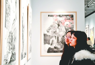 在河南郑州开幕的弘扬焦裕禄精神美术作品巡展上,前来参观的观众络绎不绝。新华社发