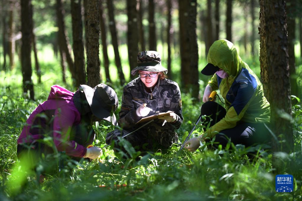 工作人员在塞罕坝机械林场采集数据(2017年7月12日摄)。新华社记者 王晓 摄