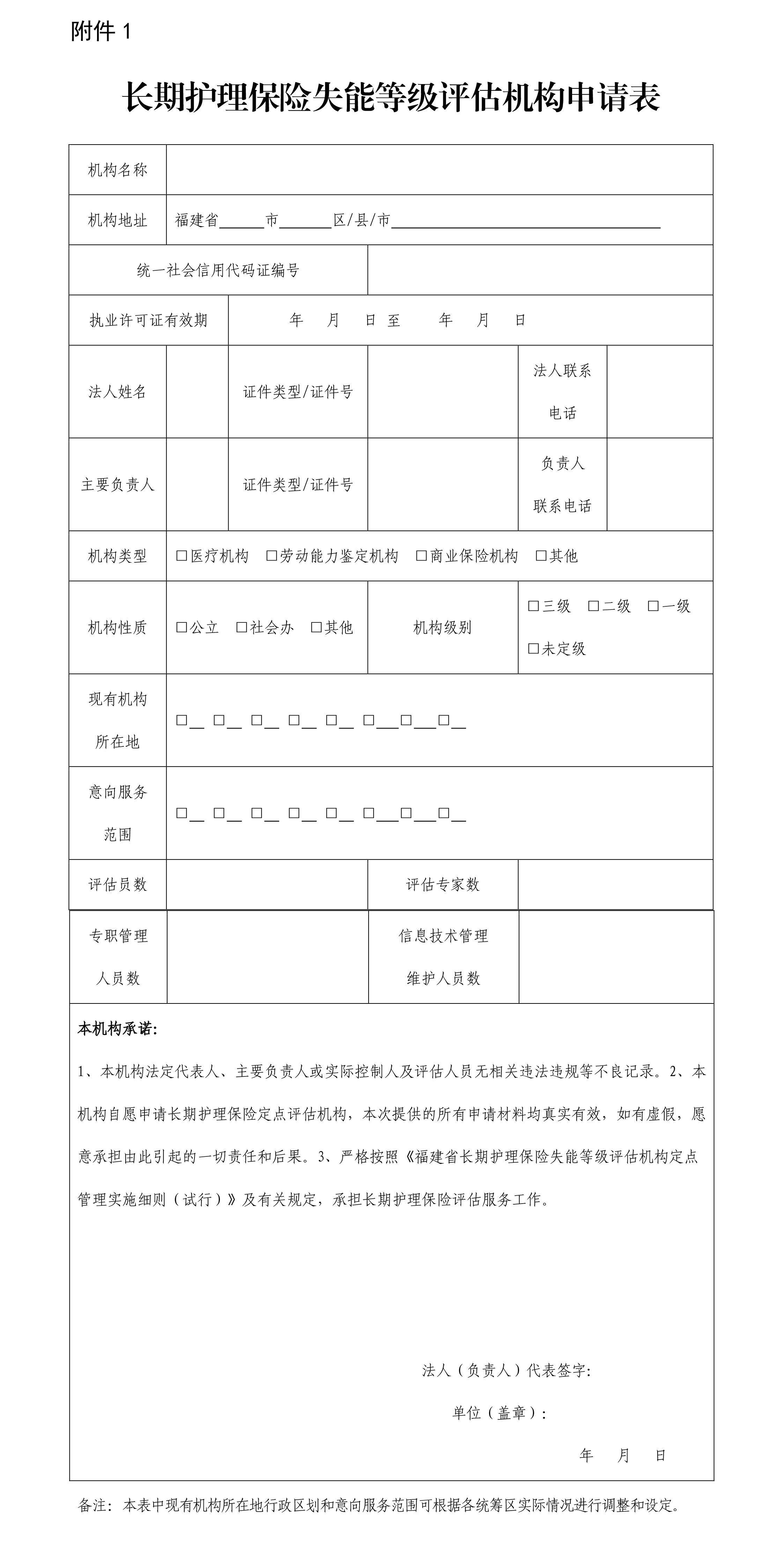福建省长期护理保险失能等级评估机构定点管理实施细则(试行)